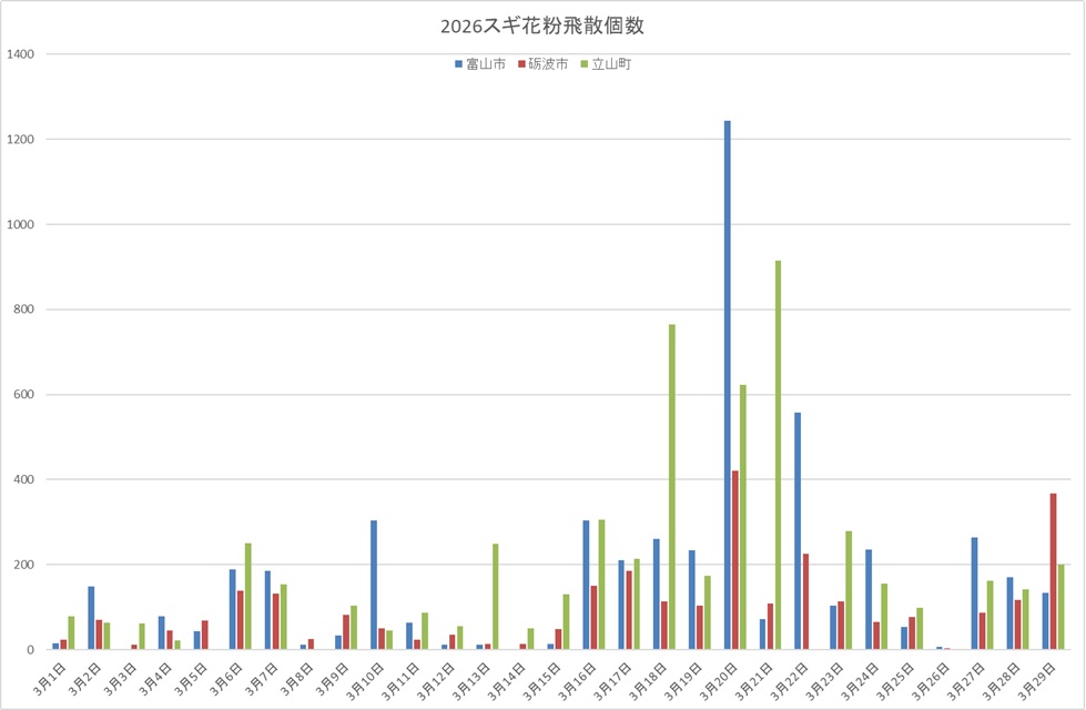 富山県内3観測点の飛散個数合計